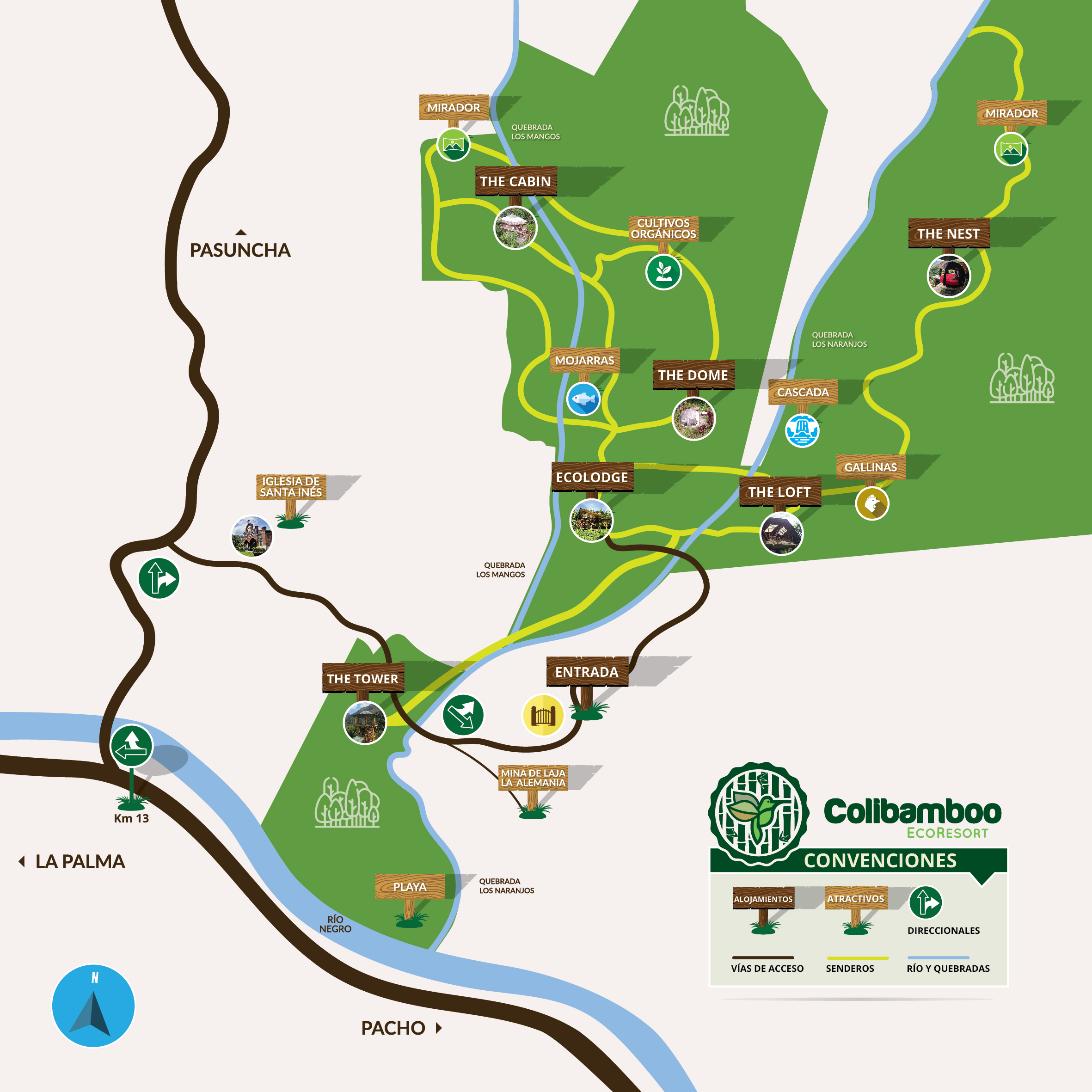 A 2.5 horas desde el peaje autonorte de Bogotá, y a sólo 1.5 horas de la Catedral de Sal de Zipaquirá, se ubica Colibamboo Ecoresort, en la Vereda Santa Inés, Finca El Nogal, a 13 km de Pacho (Cundinamarca). Ruta señalizada y accesible desde Bogotá Norte.